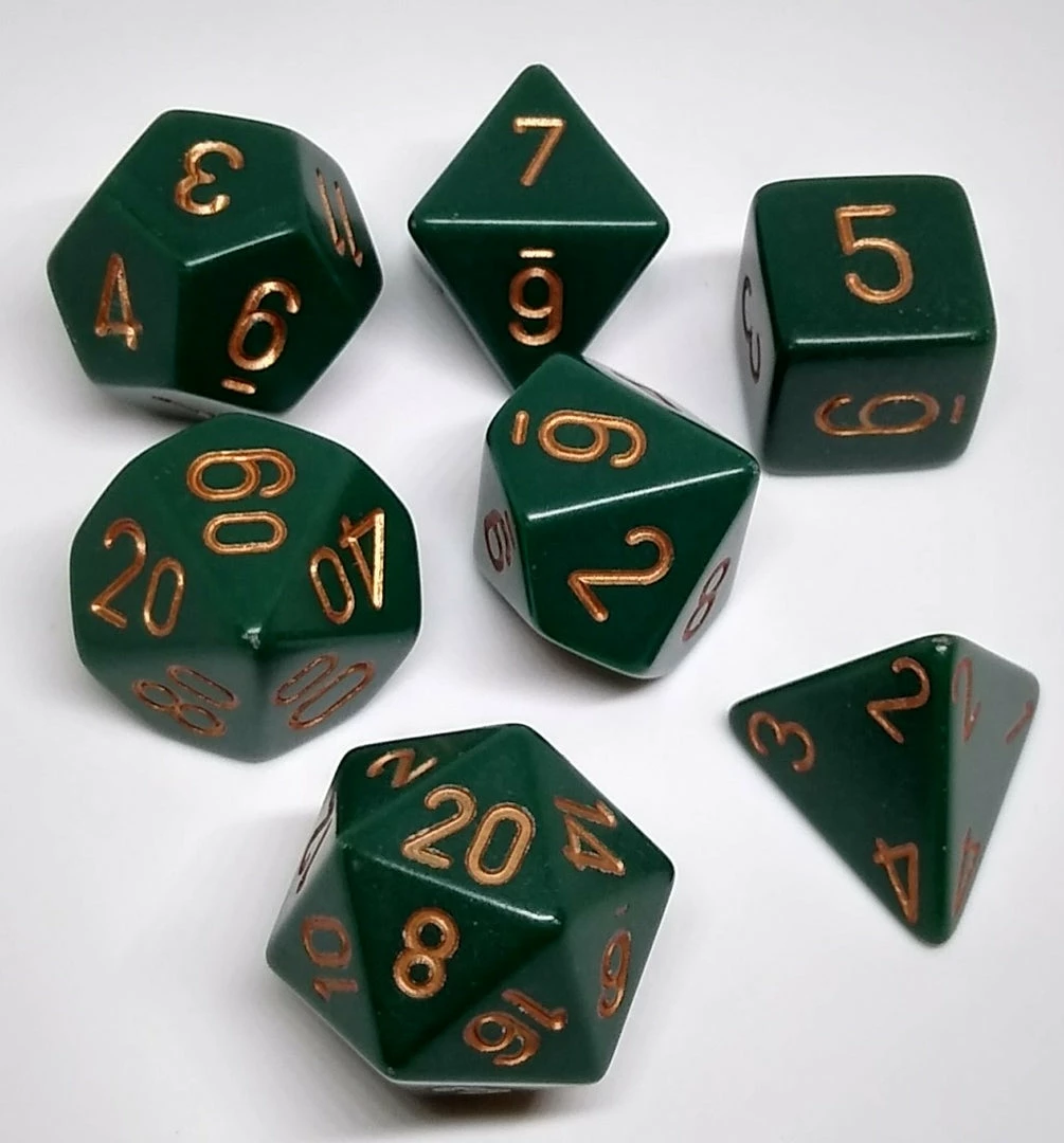 Budget π₯° Accessories Chessex 25415 Opaque: Dusty Green/Copper – Polyhedral (7 Dice) π