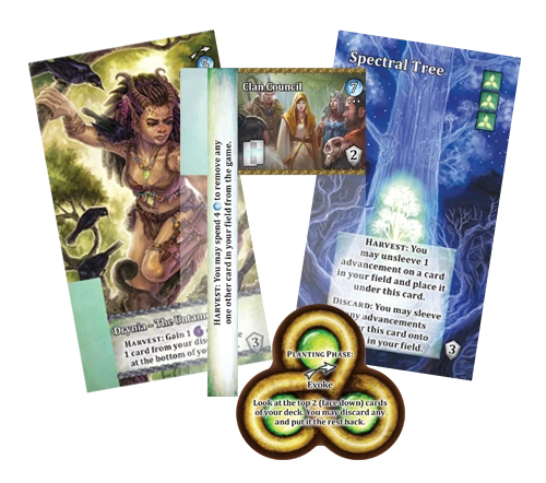 Harmony adds new advancement and vale cards, giving players more card crafting options and exciting new possibilities for combos. Amulets feature unique effects and greater variety over regular mana tokens. Leader cards grant abilities that can be upgraded to become even more powerful.
