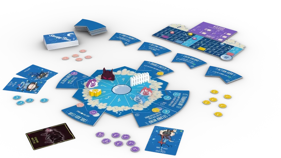 On a turn inย Sheepy Time, you play one of two cards in your hand to move around the circle, potentially activating neat effects, while jumping the fence each time you complete a lap to put yourself in position to earn more points. When refilling your hand, however, if you draw a Nightmare card, you have to activate the Nightmare โ and if it crosses your path, your human may be scared awake, which means you’ll earn no points this round. How far do you dare push your Zzzs to prove you’re the dreamiest sheep of all!