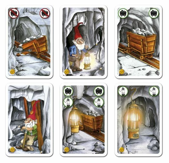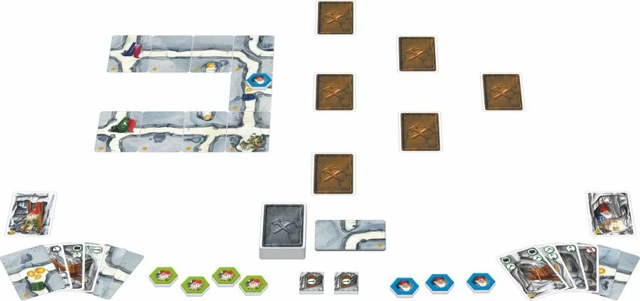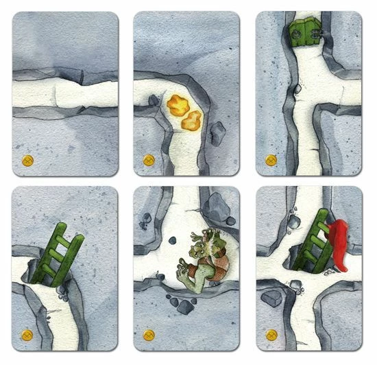 In this card game, you play path or action cards. The path cards form a maze in the direction of the six goal cards, which contain a variable number of gold stones. The action cards are used to hinder your opponent or to help you to repair broken equipment. A greedy troll also lurks in the mine, and you will have to pay him to progress and he doesn’t give back any change!
