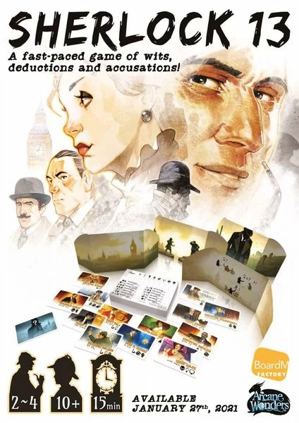 Inย Sherlock 13, first published asย Holmes 13, the players take the role of a detective, trying to unmask the famous thief Arsene Lupin, who is among them in disguise.