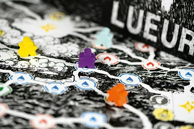 Inย Glow, you are an adventurer who builds their company by recruiting a new traveling companion each turn, trying to combine their powers as best as possible. You’ll roll the dice to activate the advantages that your companions bring you…or their disadvantages. Gather many slivers of light to dispel the darkness, restore the colors, travel the land to reach landmarks, and (yes) score points.