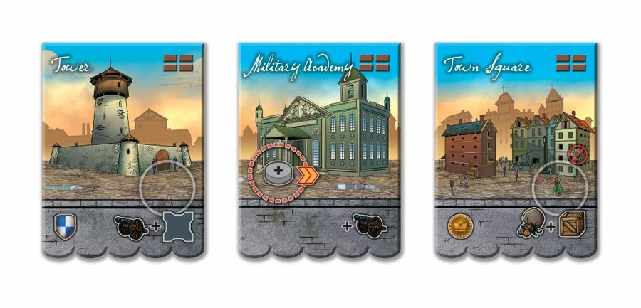 The new building market creates a totally different strategic experience within the same rule set. Most of the actions on the buildings are familiar, but new concepts include trade, fortify, and conscription & mobilization.