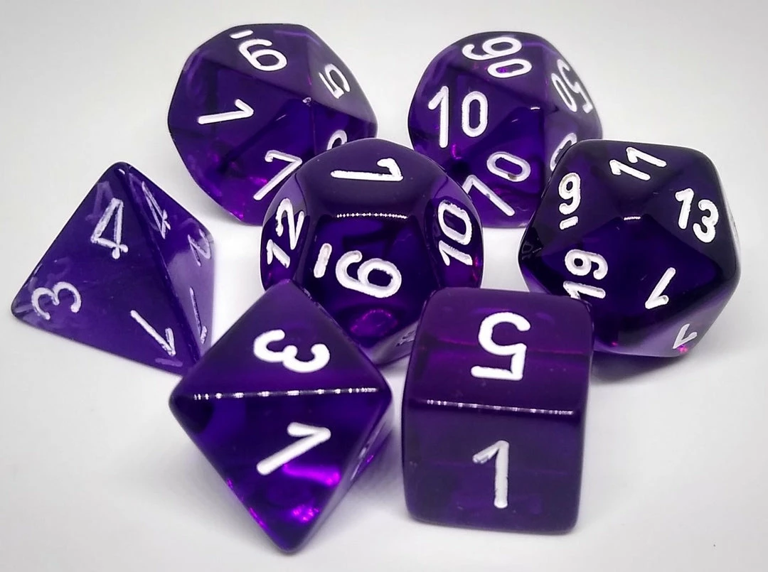 Discount π Chessex 23077 Translucent: Purple/White – Polyhedral (7 Dice) β