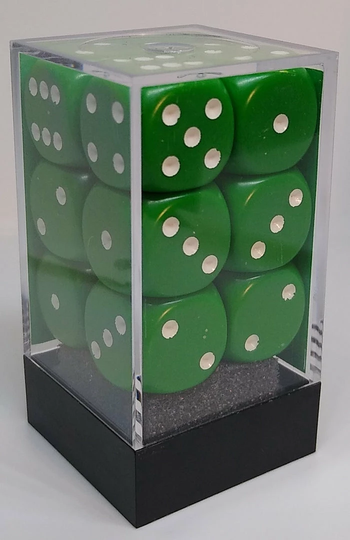 Outlet ❤️ Chessex 25605 Opaque: Green/White – 16mm D6 (12 Dice) ❤️