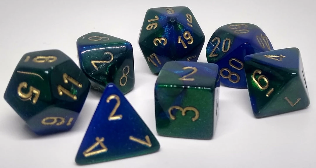Budget π Chessex 26436 Gemini: Blue-Green/Gold – Polyhedral (7 Dice) β