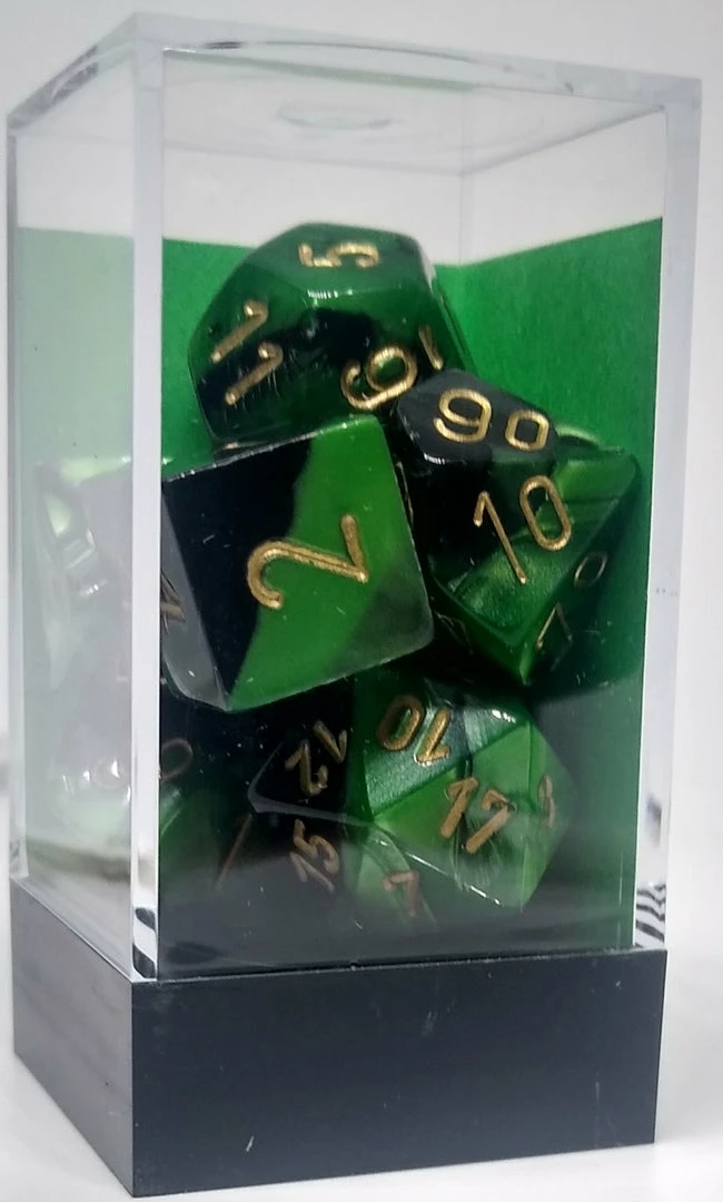 New π₯ Chessex 26439 Gemini: Black-Green/Gold – Polyhedral (7 Dice) π§¨