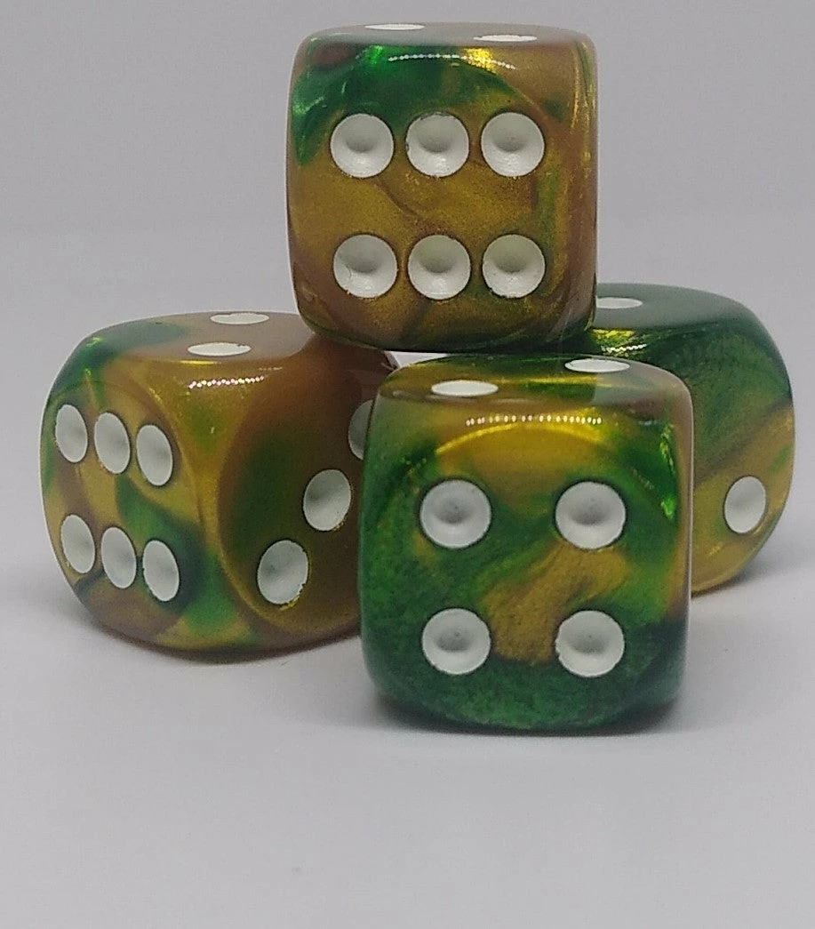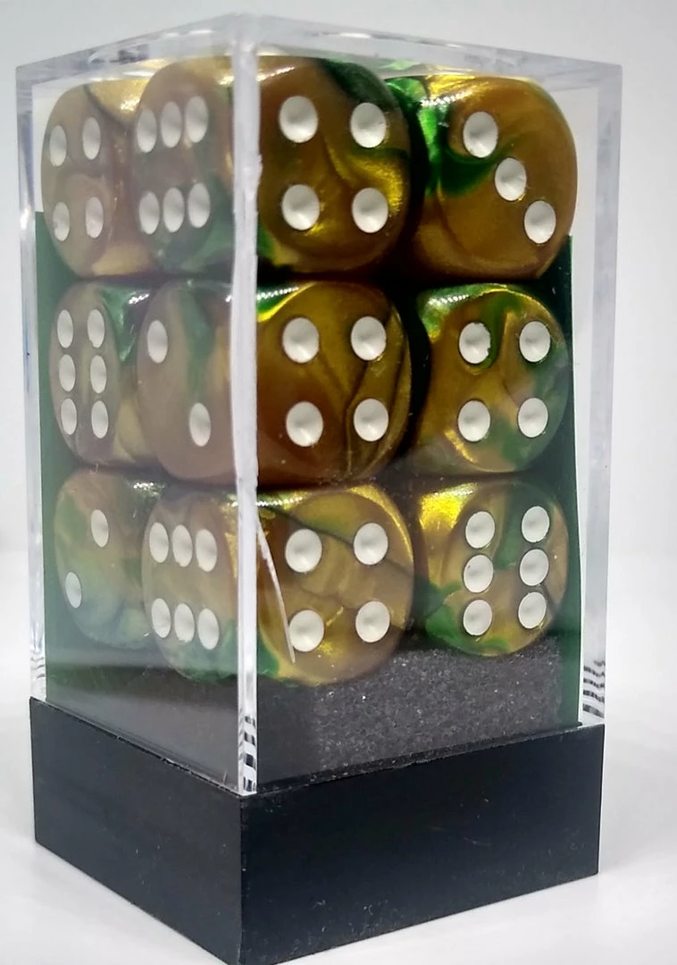 Wholesale π€© Chessex 26625 Gemini: Gold-Green/White – 16mm D6 (12 Dice) β¨