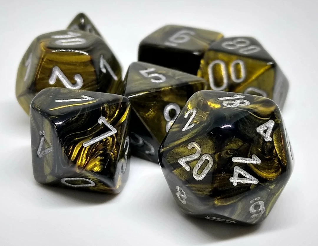 Outlet π₯° Chessex 27418 Leaf: Black Gold/Silver – Polyhedral (7 Dice) Accessories π§¨