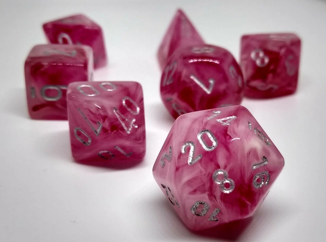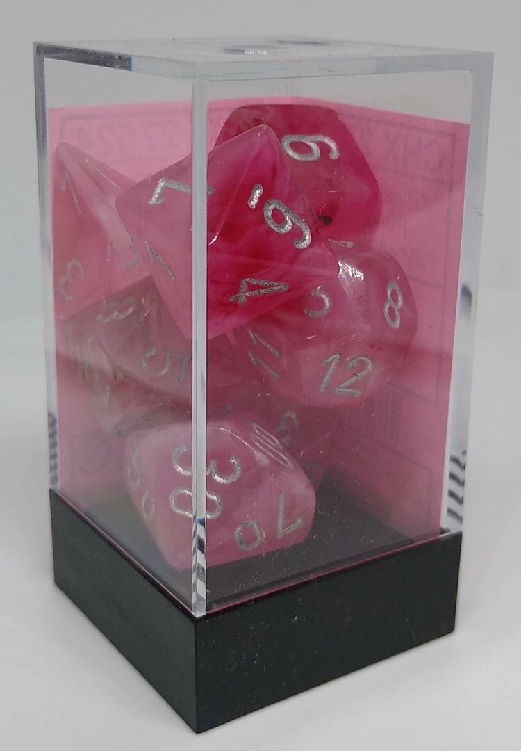 Wholesale π Chessex 27524 Ghostly Glow: Pink/Silver – Polyhedral (7 Dice) π