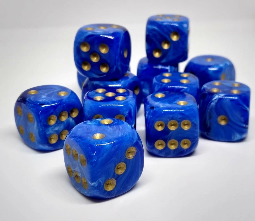 Brand new π Chessex 27636 Vortex: Blue/Gold – 16mm D6 (12 Dice) Accessories β¨