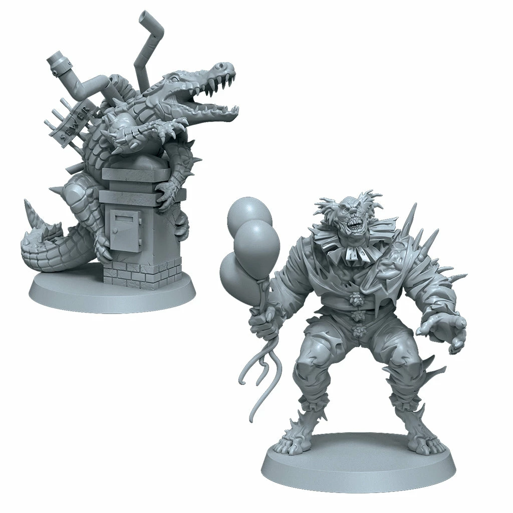 The Urban Legends Abominations pack brings 4 different Abominations and their cards. The Killer Clown, Chupacabra, Sewer Crocodile, and Abductor. You’ve heard of them. You feared them. And now, it is time to fight them!