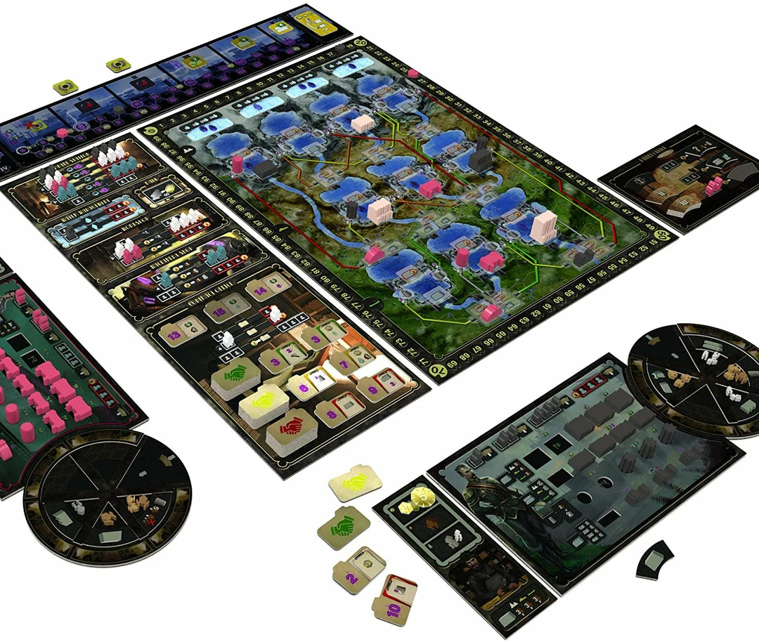 Over five rounds, the players must fulfill power requirements represented by a common competitive power track and meet specific requests of personal contracts. At the same time, by placing a limited number of engineers, they attempt to enhance their machinery to acquire new and more efficient construction actions and to build and activate special unique-effect buildings to forward their own developing strategy.