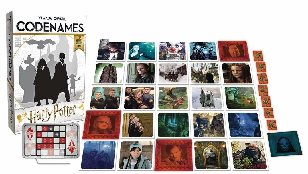 Codenames: Harry PotterΒ features the gameplay fromΒ Codenames Duet, with players working together to reveal all the right cards before they run out of time or summon Lord Voldemort or another dark wizard.