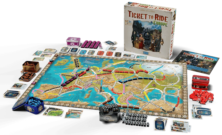 Ticket to Ride: Europe β 15th AnniversaryΒ contains material from theΒ Ticket to Ride: EuropeΒ base game and theΒ Europa 1912Β expansion for a total of 108 destination ticket cards.