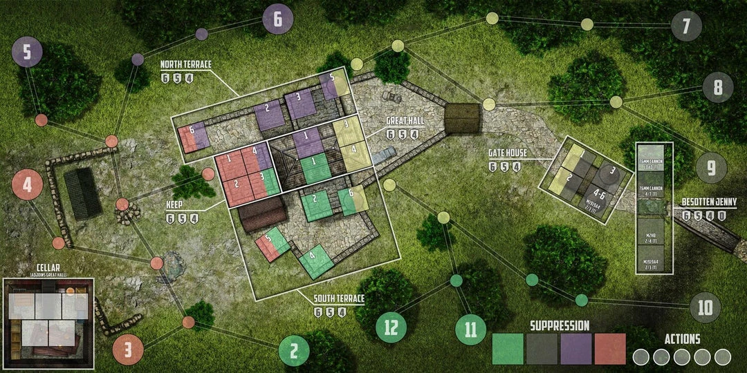 There is also a 2 player variant where one player controls the defenders of Castle Itter, while the other player controls the SS attackers.