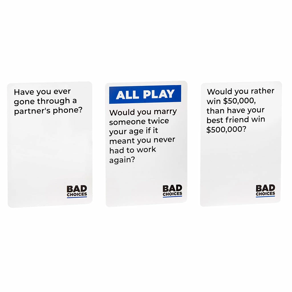 Bad Choices is the next level combination of βNever Have I Everβ and βUNOβ. This is the party game for finding out hilarious truths, secrets and stories about your friends