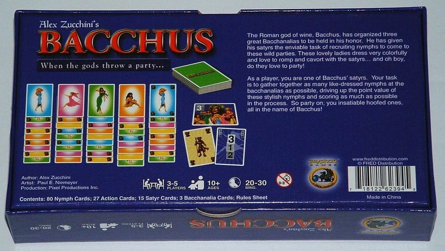 As a player, you are one of Bacchusβ satyrs. Your task is to gather together as many like-dressed nymphs at the bacchanalias as possible, driving up the point value of these stylish nymphs and scoring as much as possible in the process.