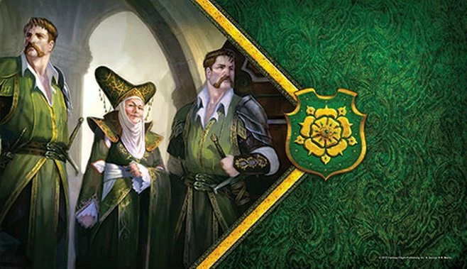 Represent your faction in style with eight new playmats designed for A Game of Thrones: The Card Game! Each of the eight factions in the second edition of A Game of Thrones: The Card Game receives a playmat depicting iconic art from that faction and showcasing the factions sigil. Whether youre playing in a high-caliber tournament or just at your kitchen table, these A Game of Thrones: The Card Game playmats offer a high-quality play surface that presents your cards in a thrilling and thematic context.