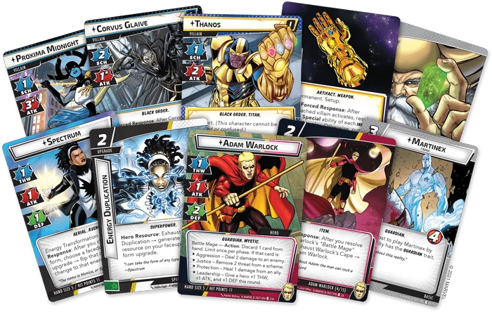 In this third campaign expansion forΒ Marvel Champions: The Card Game, you and your fellow heroes must challenge the forces of Thanos. This massive expansion contains a brand-new campaign featuring five thrilling scenarios pitting you against members of the zealous Black Order, including Ebony Maw, Proxima Midnight, Corvus Glaive, and, of course, the Mad Titan himself. As with previous expansions, you can play each of these scenarios individually or as part of a larger campaign, and with a slew of new modular encounter sets, there will be ample opportunity to mix things up for all of your Marvel Champions content. Of course, a new wave of expansions means more heroes as well, and The Mad Titanβs Shadow starts it off with the mighty champions Adam Warlock and Spectrum, both of whom come with fully pre-built and ready-to-play decks right out of the box.