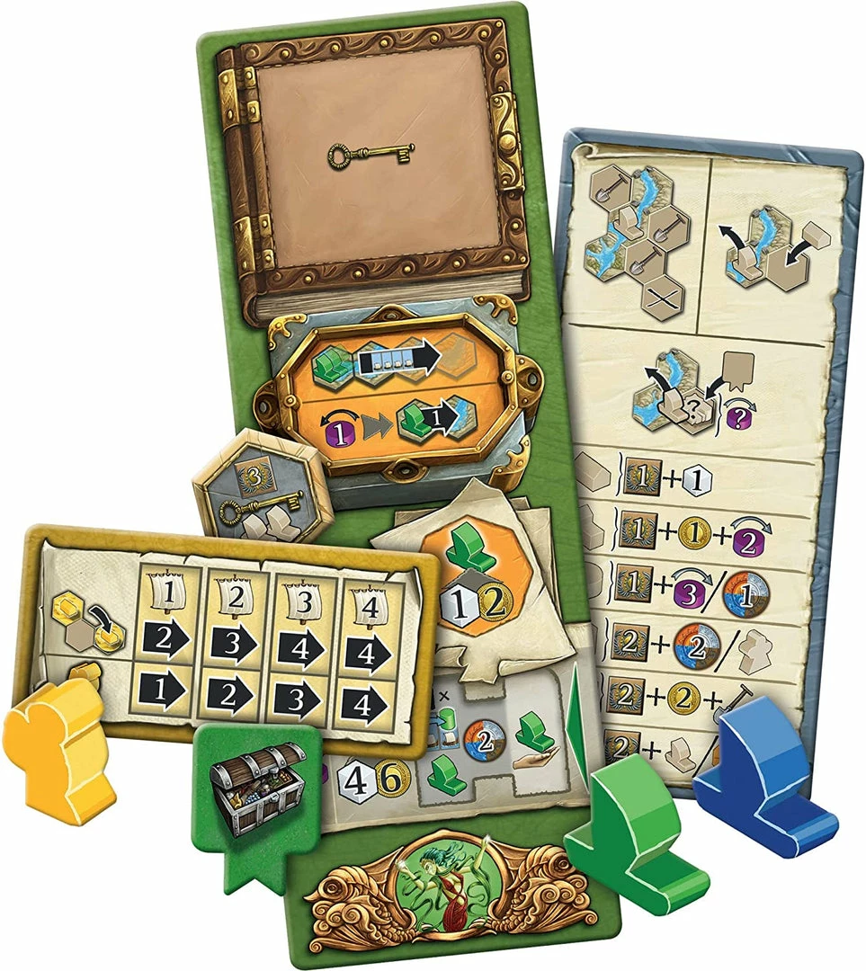 The factions of Terra Mystica have opened their doors for business beyond the trading post in Terra Mystica: Merchants of the Seas. More trade flows between the factions with their brand new ships sailing on the rivers. A new large building, the shipyard, upgrades your shipping or range and produces ships with twenty faction board extensions.