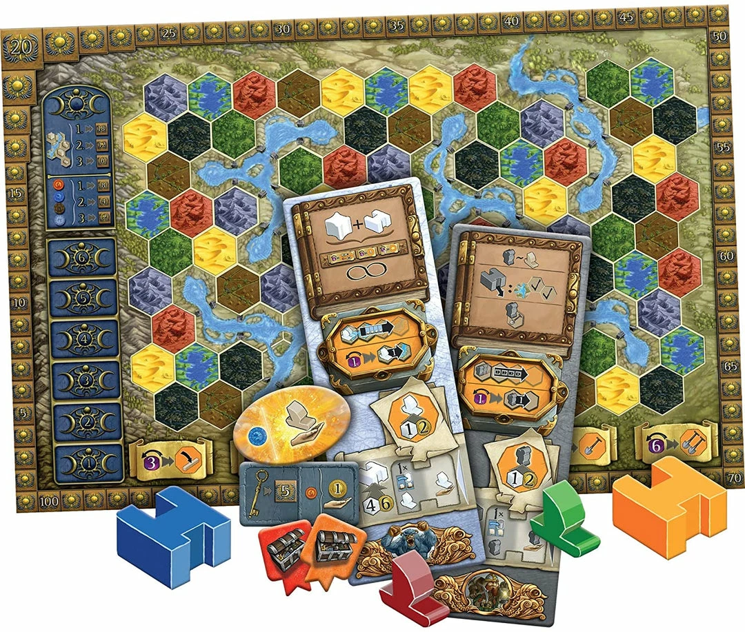 The factions must also adjust to an entire new set of 12 round scoring tiles, four new Ship related Favors, three new bonus tiles, three additional power actions, town tiles, and two maps: Loon Lakes and Fjords. The maps and most of the round scoring may also used be used with the base game if desired.