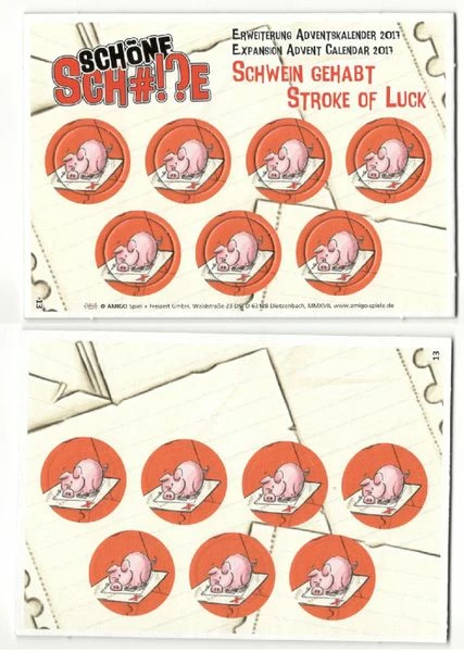 Comes with 7 Lucky Pig chips and instructions in English and German.