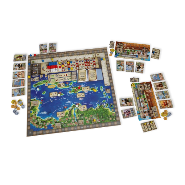 Maracaibo, (third edition) the new strategy game for 1-4 players by Alexander Pfister, is set in the Caribbean during the 17th century. The players try to increase their influence in three nations in four rounds with a play time of 40 minutes per player.
