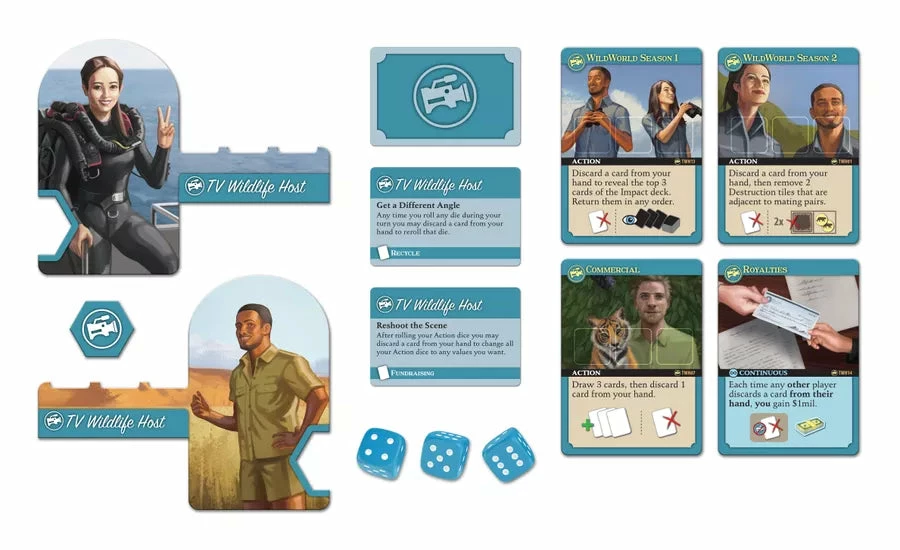 Play as the Zoologist, Philanthropist, TV Wildlife Host, Lobbyist, or Environmental Lawyer, each with a special ability.