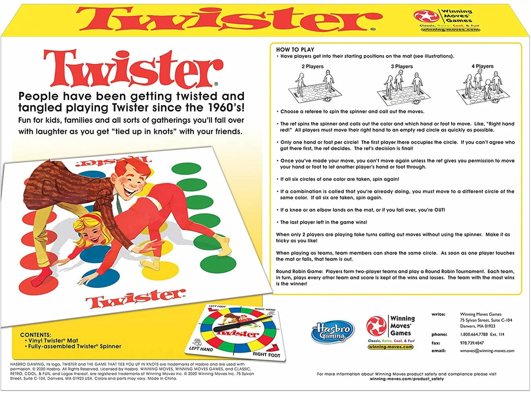 - People have been getting twisted and tangled playing Twister since the 1960’s! You’ll fall over with laughter as you get ‘tied up in knots’!