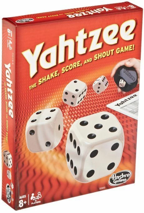 YahtzeeΒ is a classic dice game played with 5 dice. Each player’s turn consists of rolling the dice up to 3 times in hope of making 1 of 13 categories. Examples of categories are 3 of a kind, 4 of a kind, straight, full house, etc. Each player tries to fill in a score for each category, but this is not always possible. When all players have entered a score or a zero for all 13 categories, the game ends and total scores are compared.