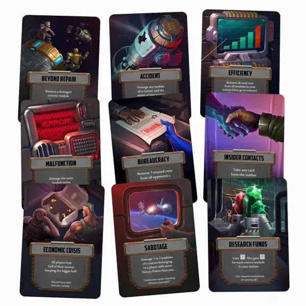 Star Scrappers: OrbitalΒ by Jacob Fryxelius, the designer ofΒ Terraforming Mars, is based on hisΒ Space StationΒ card game, which has been mechanically streamlined, updated and re-themed to fit the Star Scrappers universe – a space western setting created and developed by Hexy Studio.