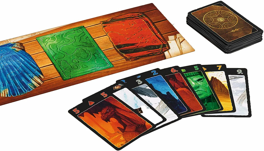 Two explorers embark on research journeys to remote corners of the world: the Himalayan Mountains, the Central American rainforest, the Egyptian desert, a mysterious volcano, and the bottom of the sea. As the cards are played, the expedition routes take shape and the explorers earn points. The most daring adventurers make bets on the success of their expeditions. The explorer with the highest score after three rounds of expeditions wins. The rules of the game are simple, but beware: The lost cities hold many unseen mysteries!