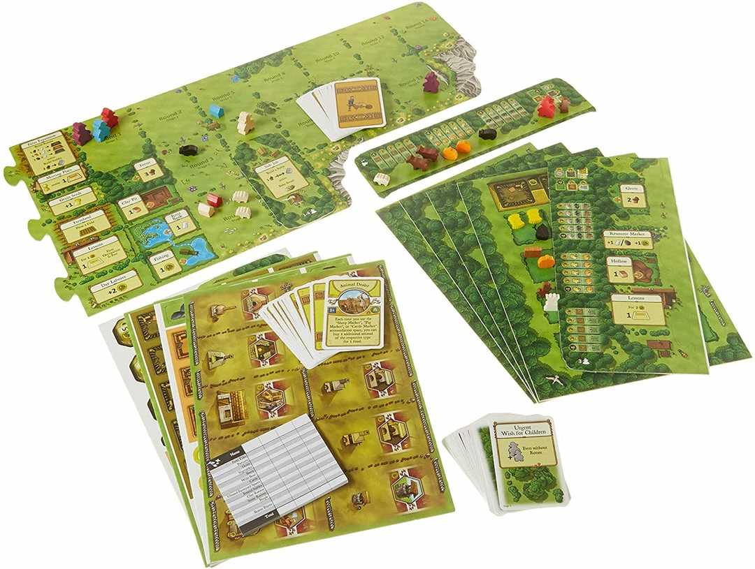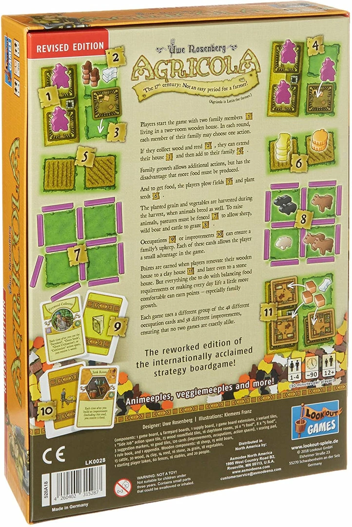 InΒ Agricola, you’re a farmer in a wooden shack with your spouse and little else. On a turn, you get to take only two actions, one for you and one for the spouse, from all the possibilities you’ll find on a farm: collecting clay, wood, or stone; building fences; and so on. You might think about having kids in order to get more work accomplished, but first you need to expand your house. And what are you going to feed all the little rugrats?