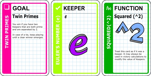 Math FluxxΒ is all about the numbers. Players use positive integers (whole numbers) in their quest to achieve a very mathematical goal β but it’s not just putting 4 and 2 together to achieve the 42 goal (for example) asΒ Math FluxxΒ also features the Plan B Meta Rule. Plan B puts special victory rules into play which give you a second way to win and require even more arithmetical acumen (e.g., “Plus Victory” lets you win if your keepers add up to the current goal). WithΒ Math Fluxx, the fun is exponential!