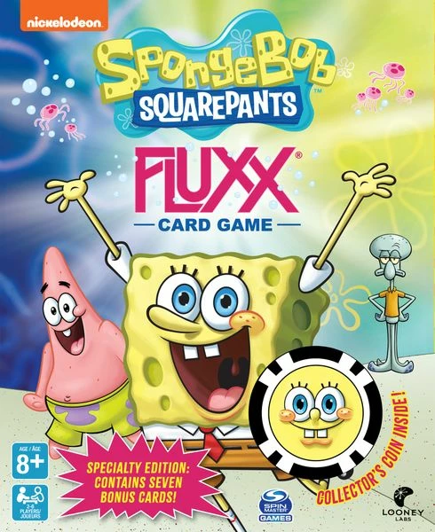 You probably already know who lives in a pineapple under the sea, but now you can join the whole Bikini Bottom gang inΒ SpongeBob SquarePants Fluxx, an undersea version ofΒ Fluxx! You can steal Mr. Krab’s Money or Squidward’s Clarinet, and give a Krabby Patty to Plankton; you can even drive off in the Invisible Boatmobile! If nautical nonsense be something you wish, you don’t have to use your imaaaagination β just playΒ FluxxΒ like a fish!