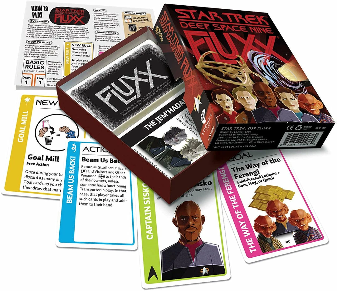 Explore the farthest reaches of the universe in Star Trek: Deep Space Nine Fluxx! Work alongside Benjamin Sisko, Quark, Jadzia Dax, Worf and all your other favorite space station personnel while you try to gather Gold-Pressed Latinum and study The Wormhole — but watch our for nasty Surprises and Creepers like the Founders and the Jem’Hadar.