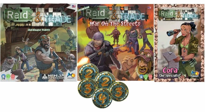 Raid & TradeΒ is a post apocalyptic game of negotiation and resource management for 3-5 players. From the ashes of a devastating third World War, a precious few golden cities emerge offering hope to those who struggle for survival in the wastelands. Players explore the ruins of the modern world completing quests, honing their skills and maneuvering for social status in order to claim a precious spot as a citizen with a Golden City. To enter the golden city you must: