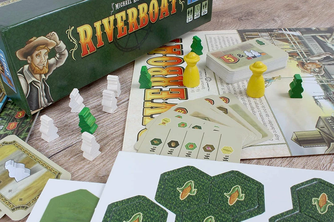 Riverboat posits each player as the owner of a 19th century farm on the bank of the Mississippi River. You need to organize your workers to ensure that the fields are ordered according to their type and harvested when ready so that the goods can be shipped to New Orleans.
