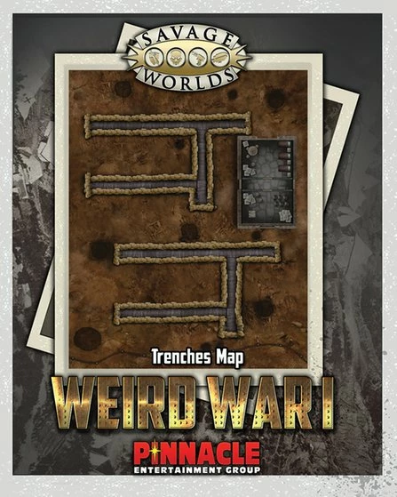 Two-sided, erasable, designed for use with the Weird War I setting, which uses the Savage Worlds core rules, but may be used for any game needing a 1 square grid map.