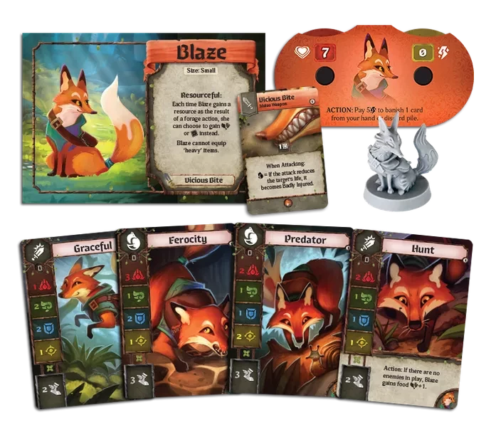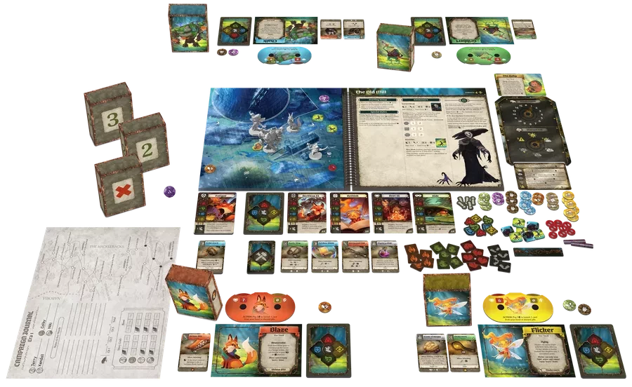 An innovative card play system allows players to level up their familiars by building and customizing their skill decks. Players will use their skill cards to perform all manner of exciting actions throughout their campaign.