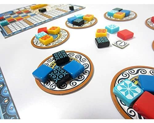 In the gameΒ Azul, players take turns drafting colored tiles from suppliers to their player board. Later in the round, players score points based on how they’ve placed their tiles to decorate the palace. Extra points are scored for specific patterns and completing sets; wasted supplies harm the player’s score. The player with the most points at the end of the game wins.