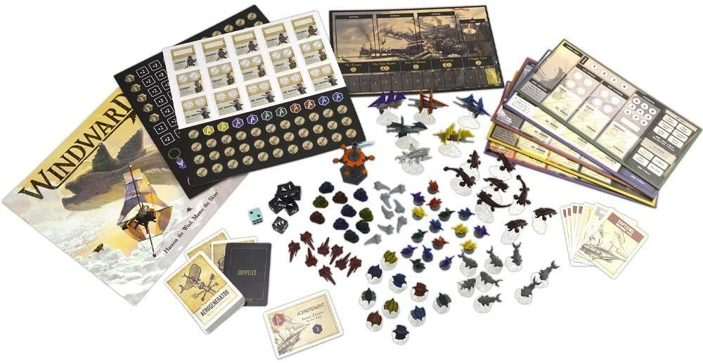 You are a captain flying your Ship on the skies of the gaseous planet Celus. Gain the most notoriety by sailing the skies, hunting crestors, fighting opponents. Whichever player has the most notoriety points at the end of the game is the winner. To gain notoriety, you can trade in Crestor teeth and gas at the trading post.