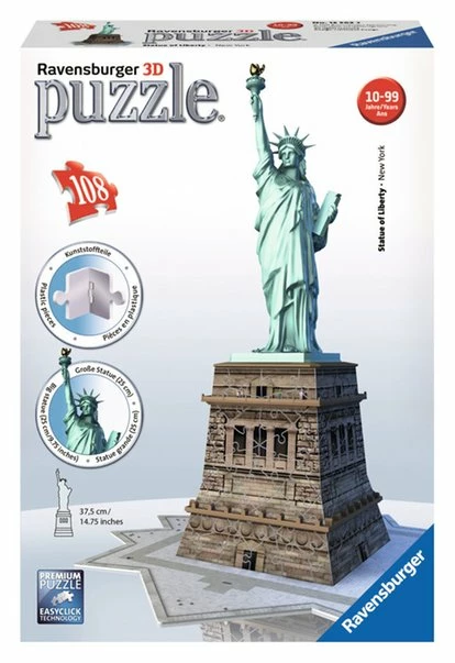 Reconstruct one of the worlds most iconic symbols of freedom and independence! The Statue of Liberty 3D Puzzle features 108 carefully-constructed plastic puzzle pieces, including curved and hinged pieces that interlock to create a colorful, 15 inch copy of this famous American landmark. Start at the base and work your way upβdisplay your finished model or disassemble and enjoy the challenge of building again.