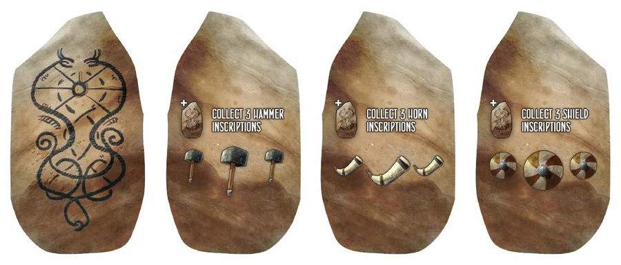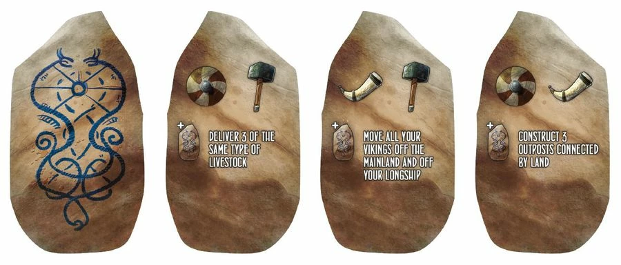 Each chapter offers 3 unique Runestones for players to collect. These are awarded to the first player to achieve a particular objective. Gaining these Runestones also awards players advantages in successive chapters. Each of these Runestones also have 1 or 2 inscriptions (Shield, Horn and Hammer). The first player to gain 3 inscriptions of 1 type collects an additional Runestone for their efforts.