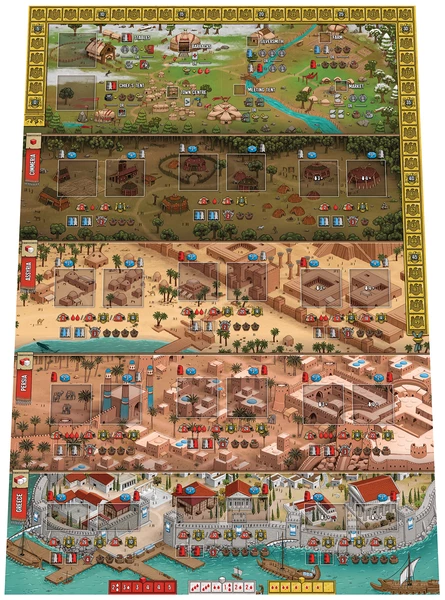 The aim ofΒ Raiders of ScythiaΒ is to be the player with the most Victory Points (VP) at the gameβs end. VP are gained by raiding Settlements, taking Plunder and completing Quests. Players will need to assemble a Crew, train Animals and gather Provisions. The game ends when there is only 2 unraided Settlements or 2 Quests remaining on the Main Board.