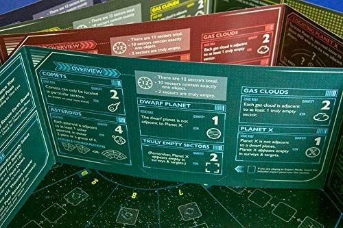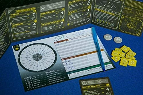 In The Search for Planet X, players take on the role of astronomers who use observations and logical deductions to search for this hypothetical planet. Each game, the companion app randomly selects an arrangement of objects and a location for Planet X following predefined logic rules.