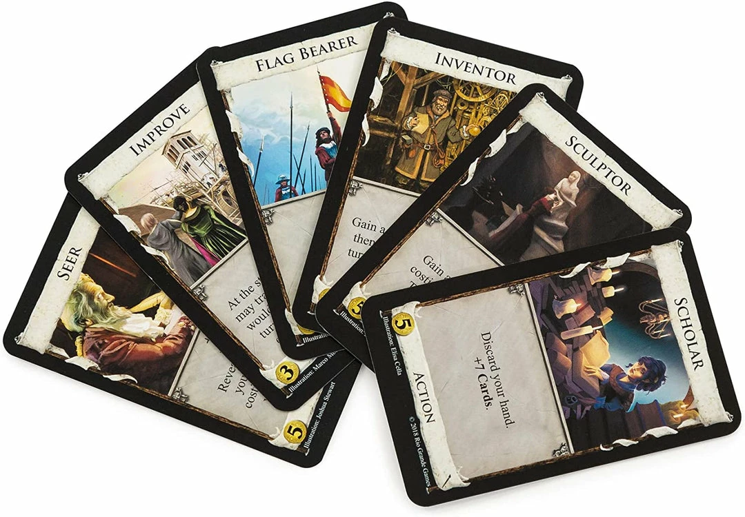 This is the 12th expansion to Dominion. It has 300 cards, with 25 new Kingdom cards. There are tokens that let you save coins and actions for later, Projects that grant abilities, and Artifacts to fight over.