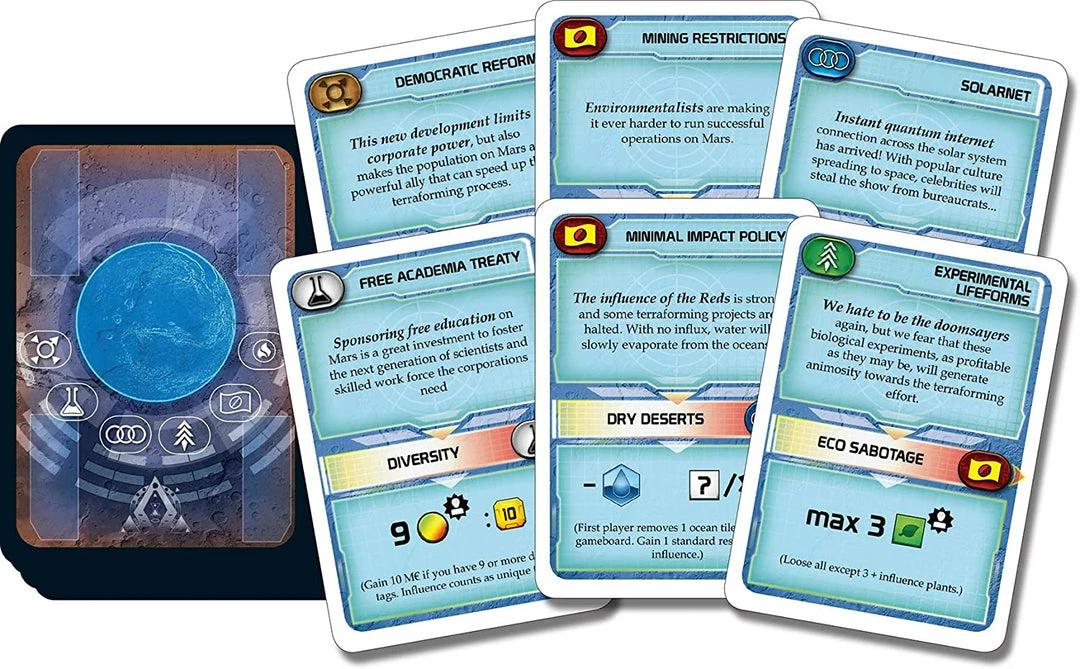 The expansion includes new corporations, new projects, and a new type of cards โ Global Events, from dust storms to riots to rising alloy demand โ that give you something to plan for.