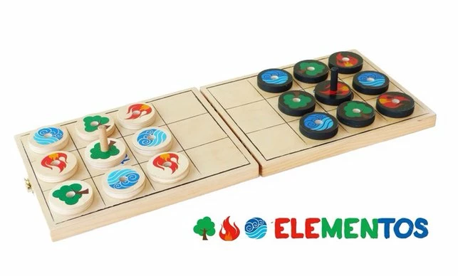 The idea behind Elementos is simple. We play in a world of 3 fundamental elements: Fire, water and a tree.. The 3 different elements complete a life cycle; fire takes tree, tree takes water, and water takes fire; the elements create a comfy state of equilibrium. Thing is, each game piece is actually a two faced deceiving character since game pieces can be flipped to reveal a different element on their other side known only to their master.